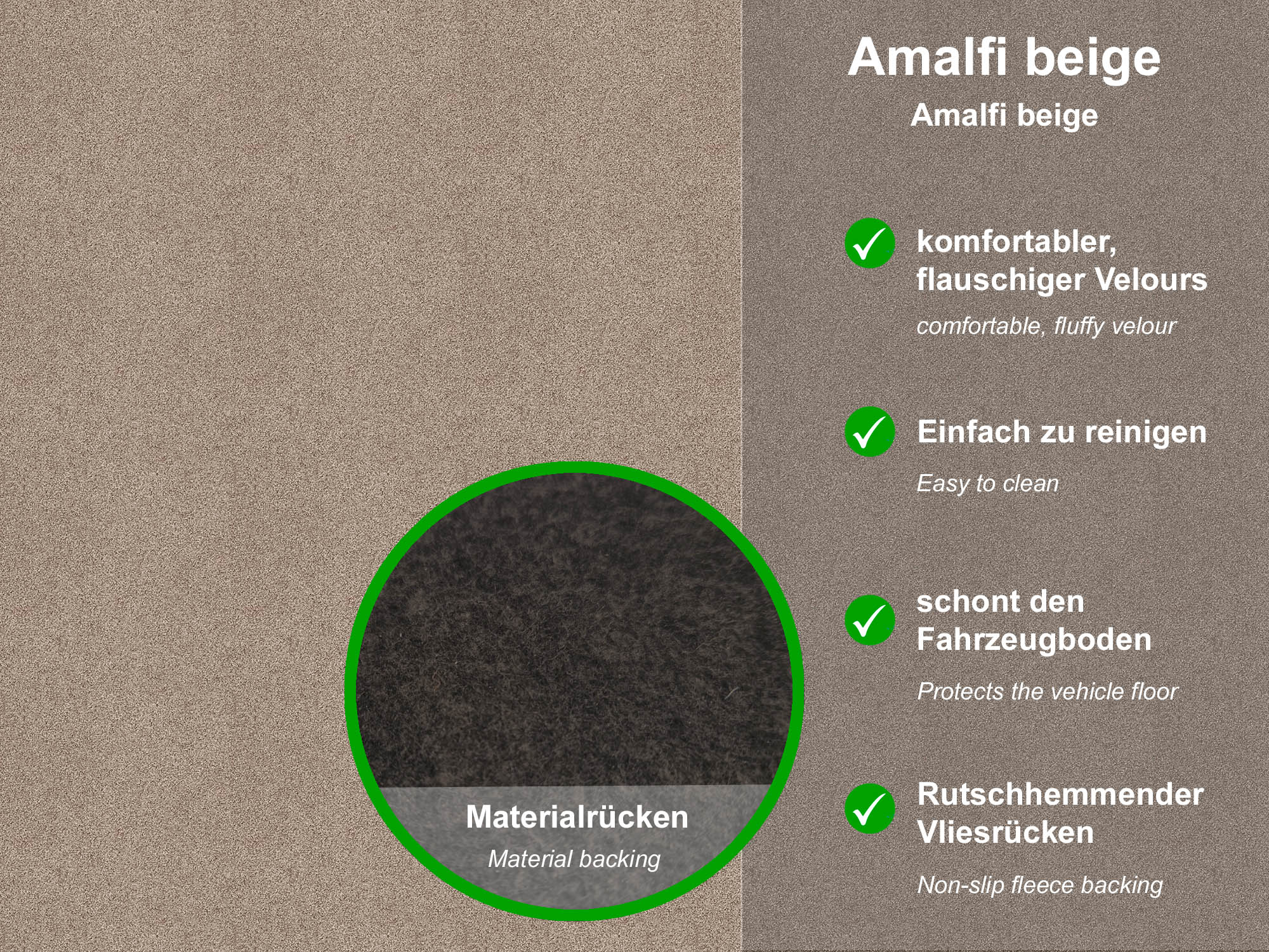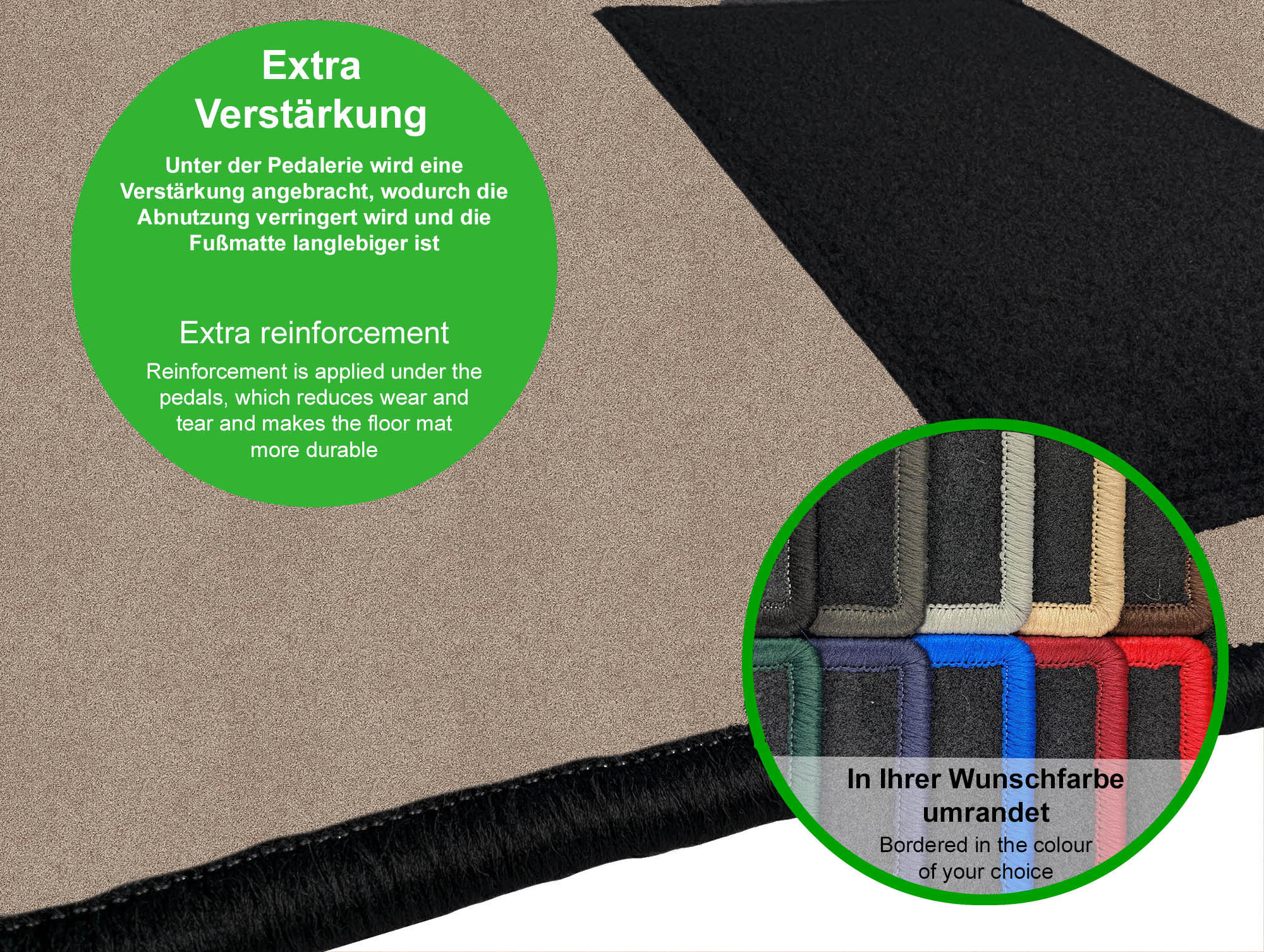 - Die Produktion und der Zuschnitt der Autofußmatten erfolgt innerhalb Deutschlands (Made in Germany)