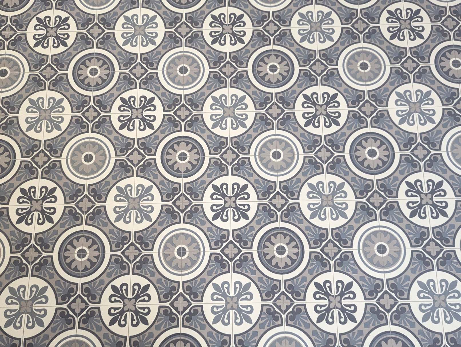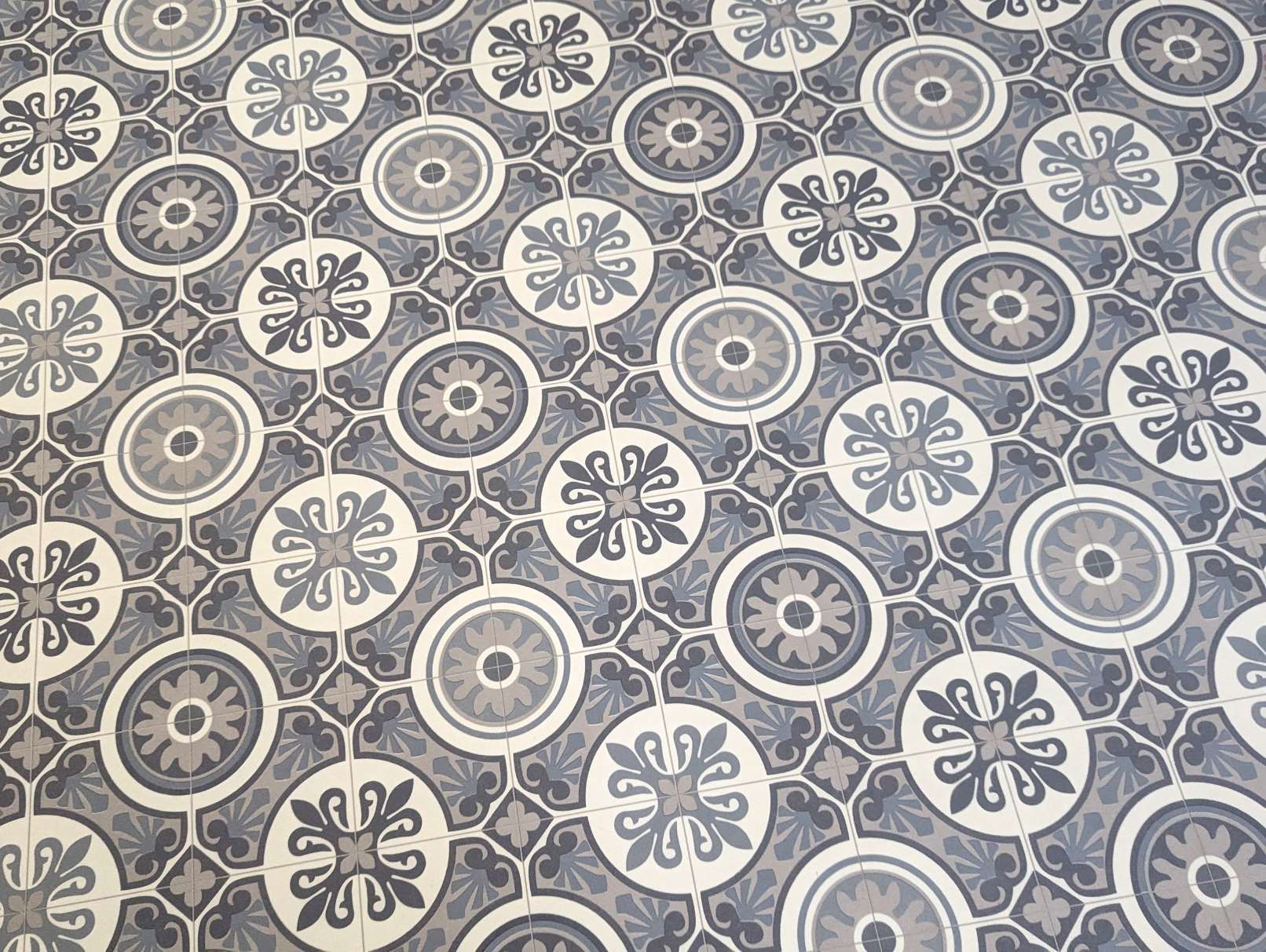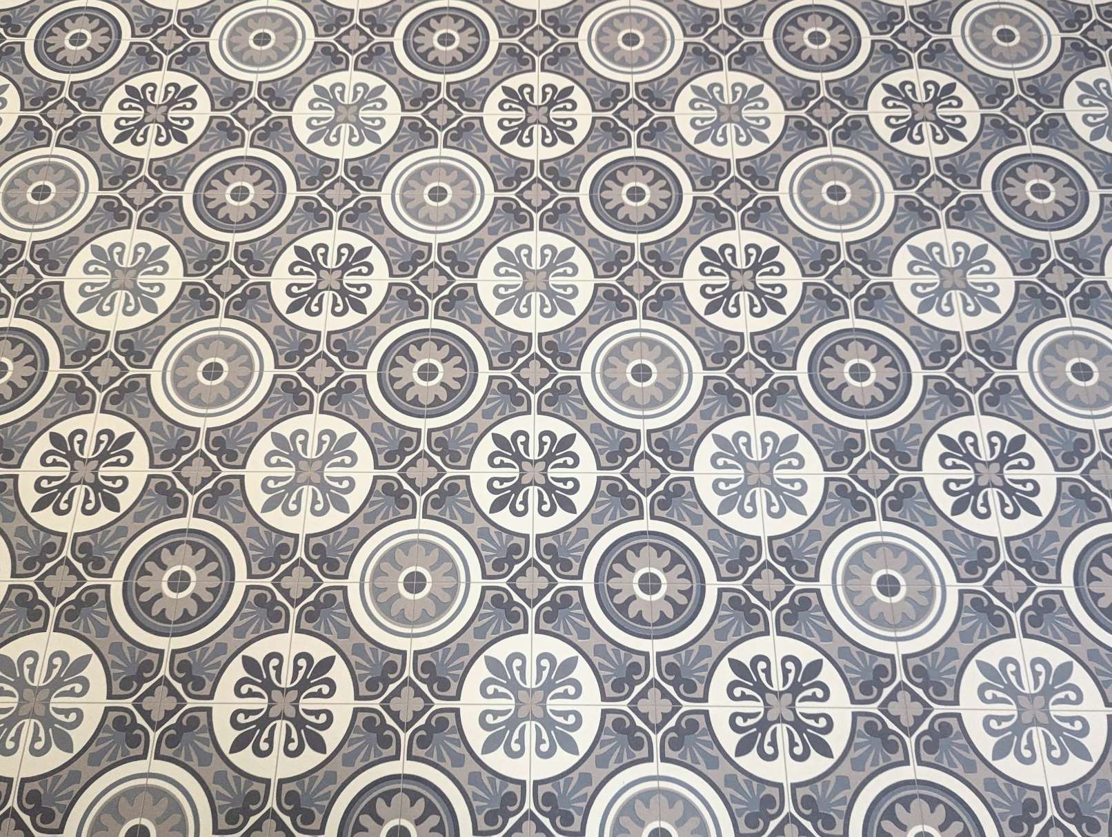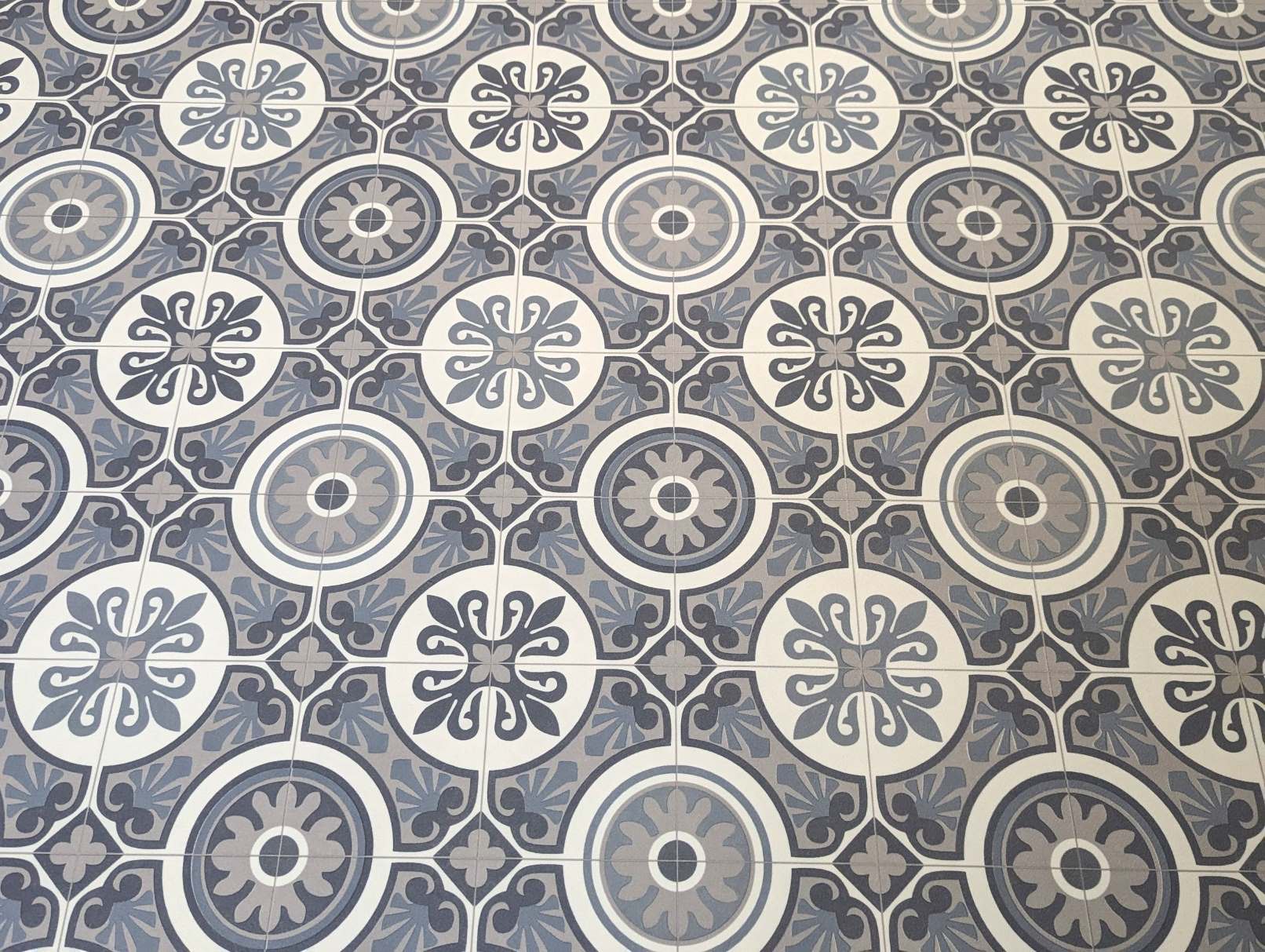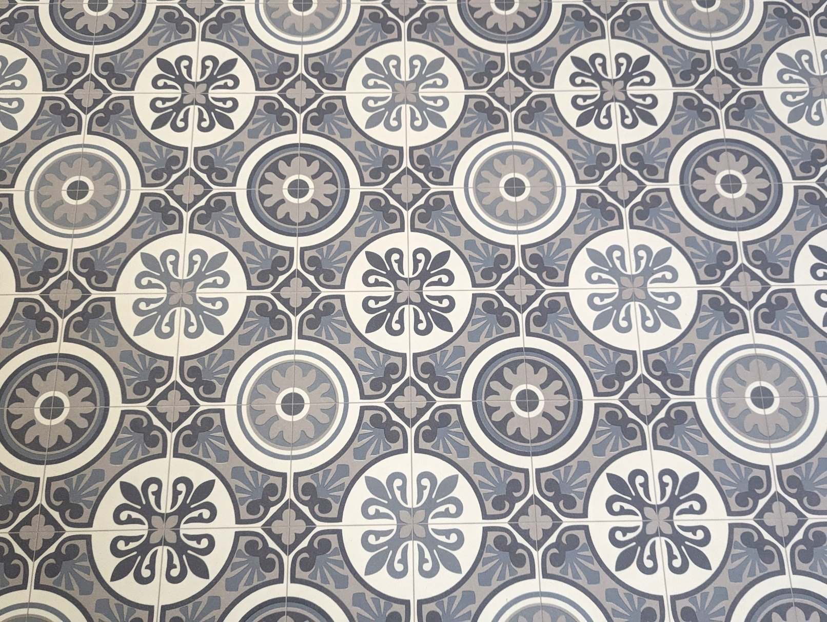 PVC vloer vinyl vloerbedekking in vintage tegelpatroon - retro ornament blauw grijs