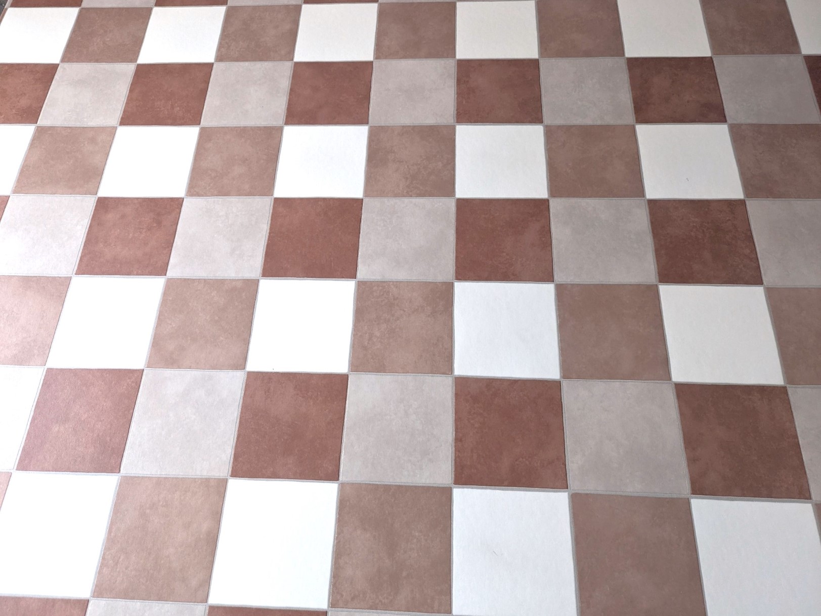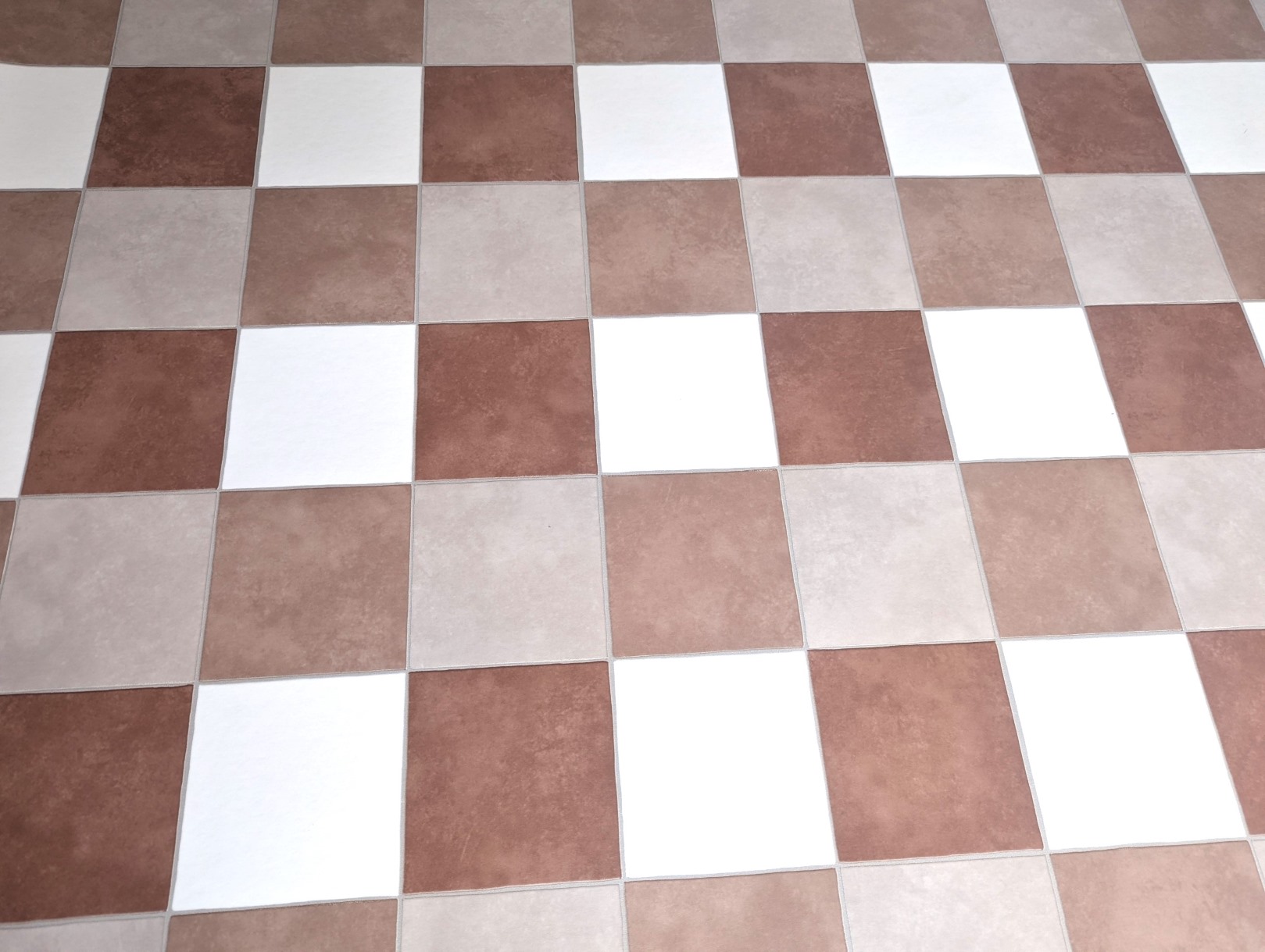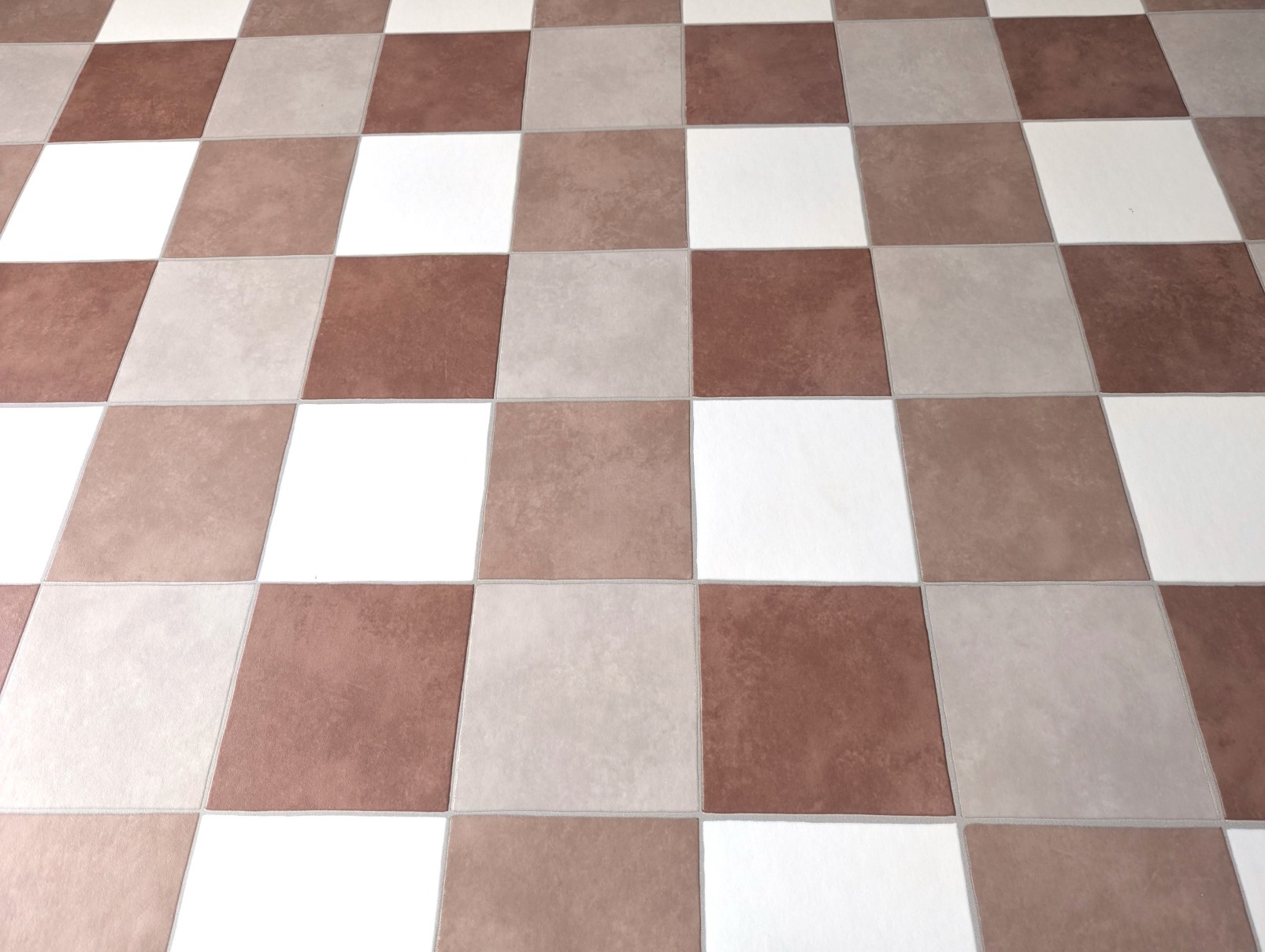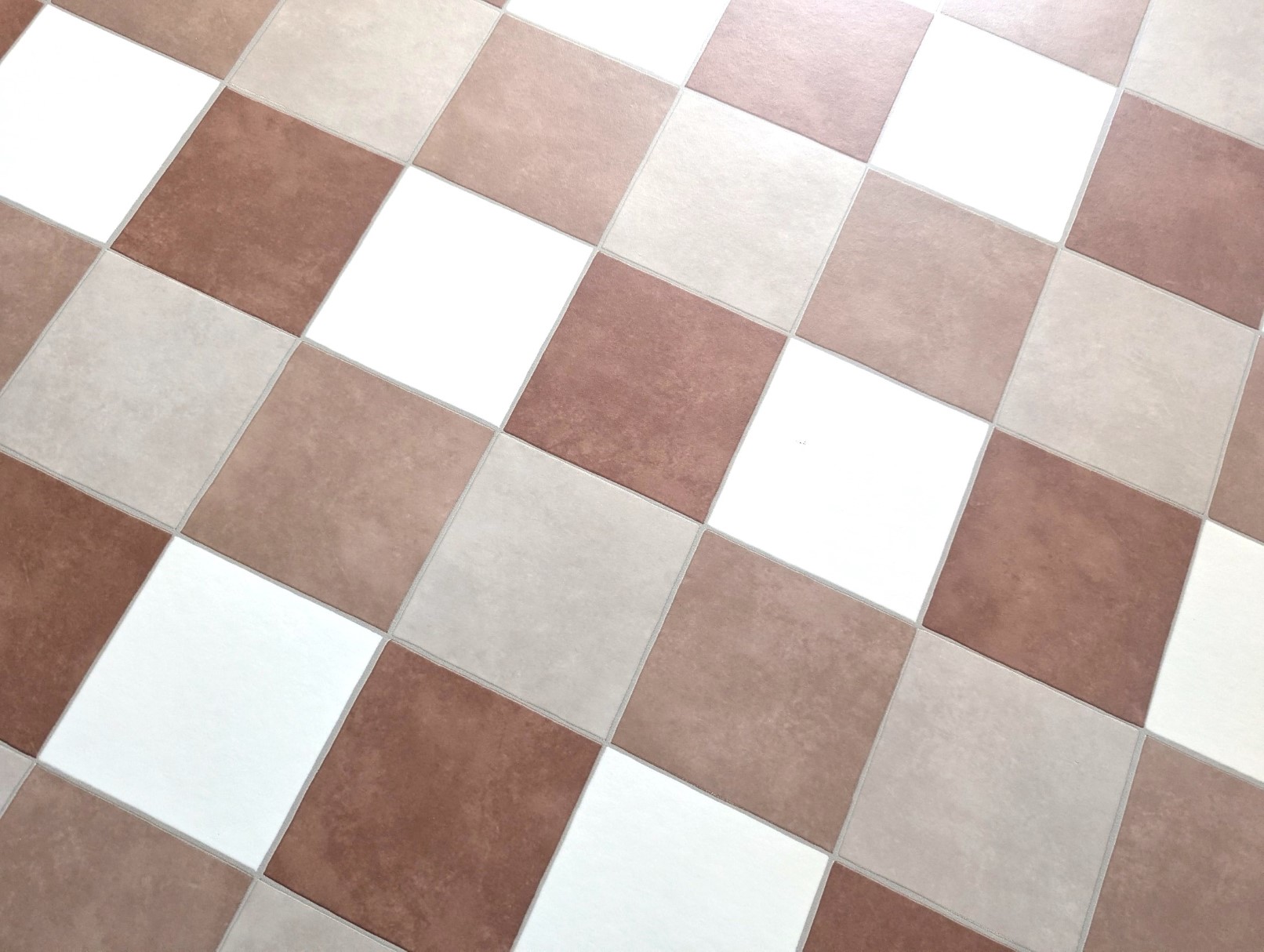 Informatie over het aanbod 'PVC vloeren Vinyl vloeren Terracotta wit geblokt in warme aardetinten'